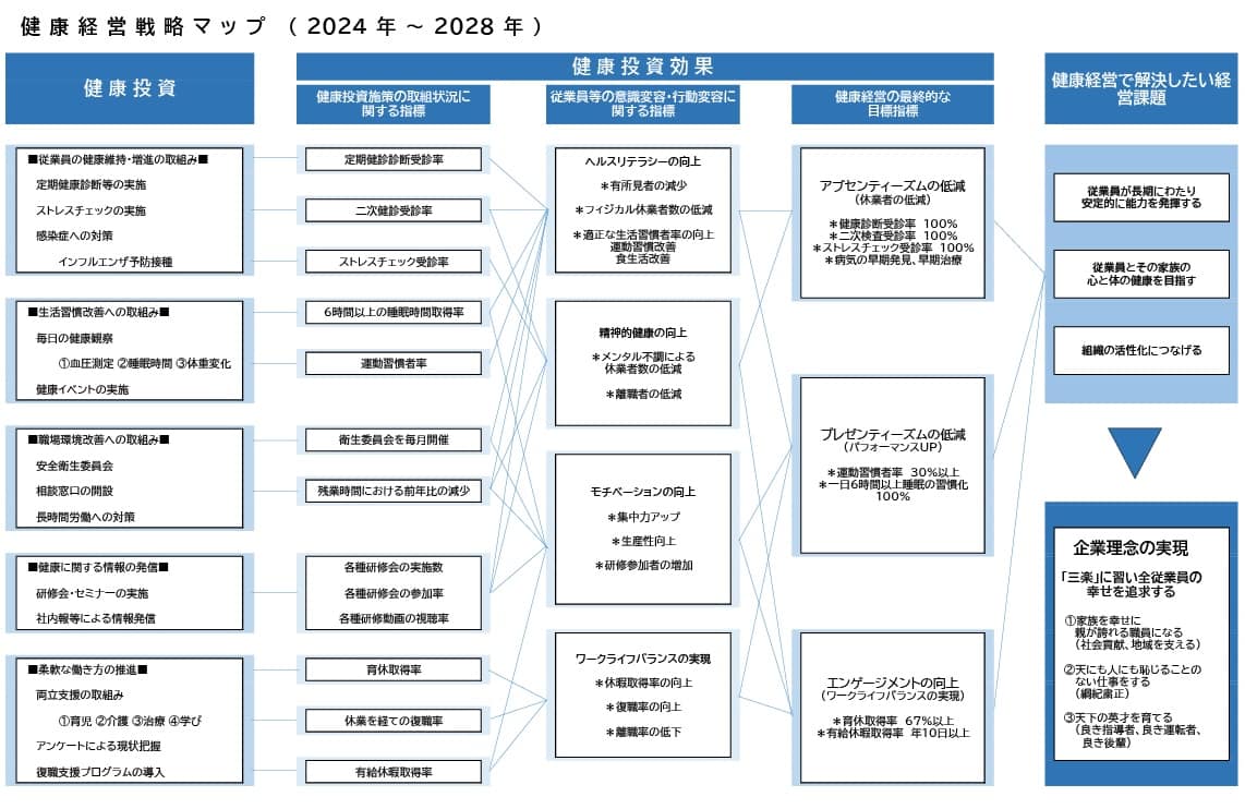 企業理念に基づき従業員への健康投資を行うことで、従業員の活力向上や生産性の向上、組織の活性化に取組んでいきます。