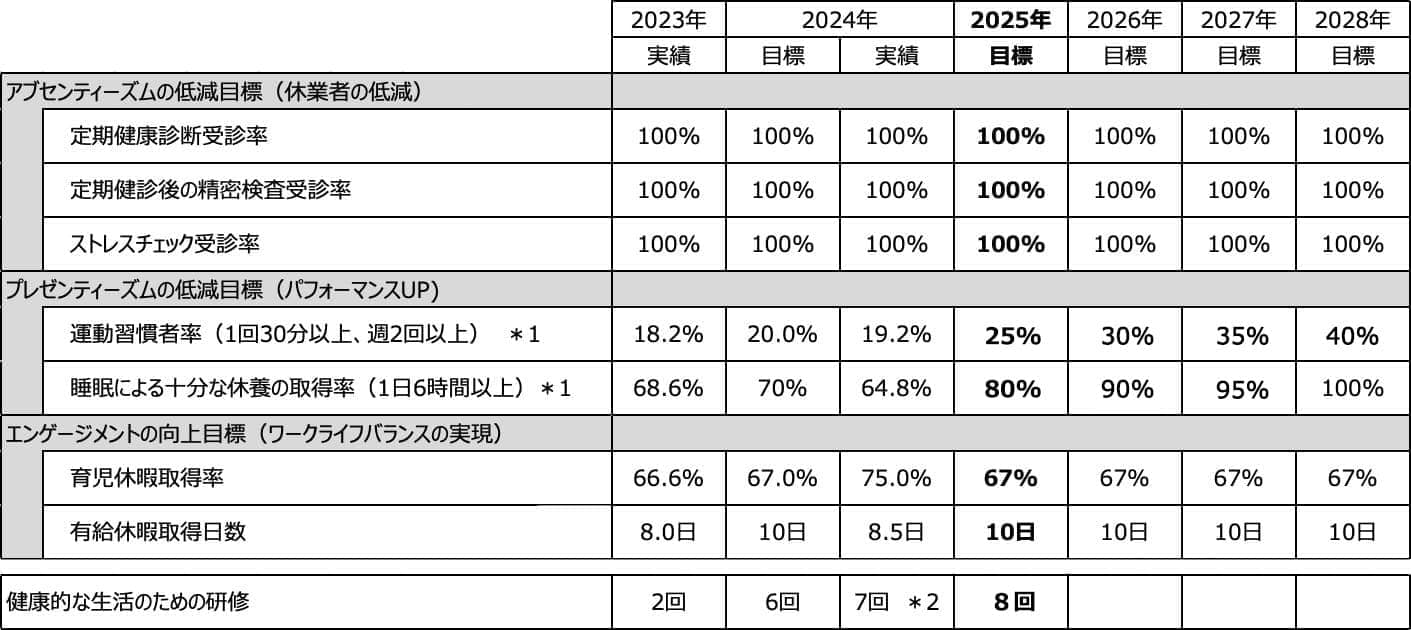 2024年度は、「適度な運動」と「6時間以上の睡眠による十分な休養」を目標設定に加え、毎日のチェックシート記入により、自ら高血圧や体重過多を注視することで、生活習慣改善に対する意識向上を図りました。