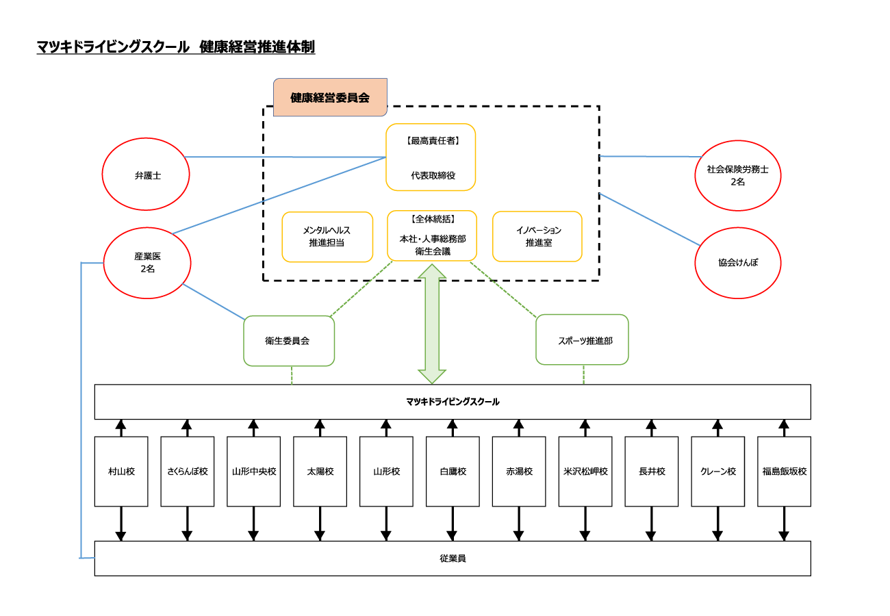 マツキドライビングスクールが、交通安全教育の実践を通じて社会に貢献していくためには、従業員が長期にわたり安定的に能力を発揮していくことが必要です。そのためには、「従業員とその家族の健康」が重要であると認識しています。